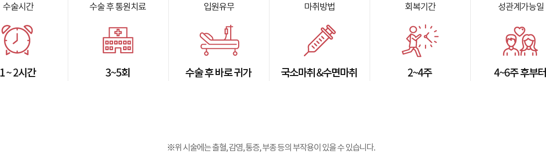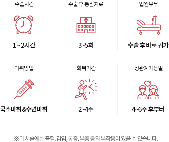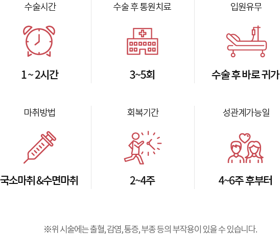 수술 후 방광을 지지하는 괄약근 압력의 증가로 요실금 증상이 교정되는 효과도 기대하실 수 있습니다.